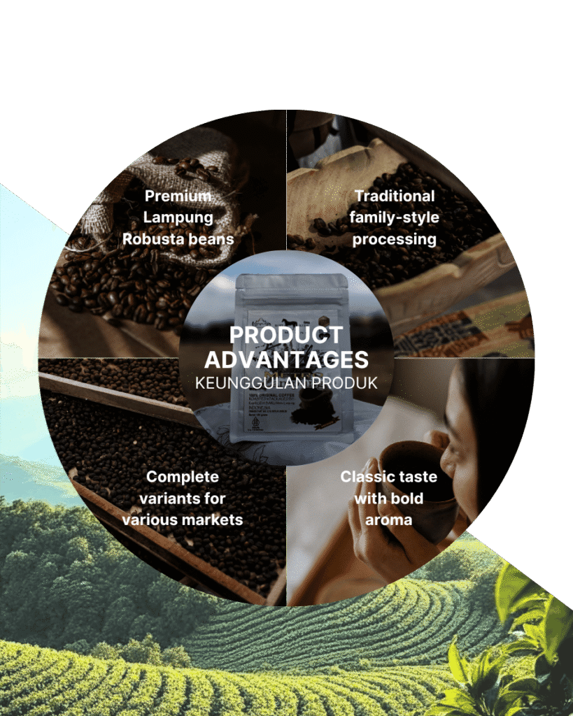 • Menghasilkan produk kopi berkualitas tinggi dengan cita rasa khas Lampung.